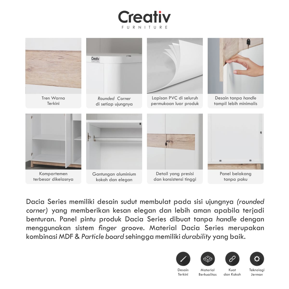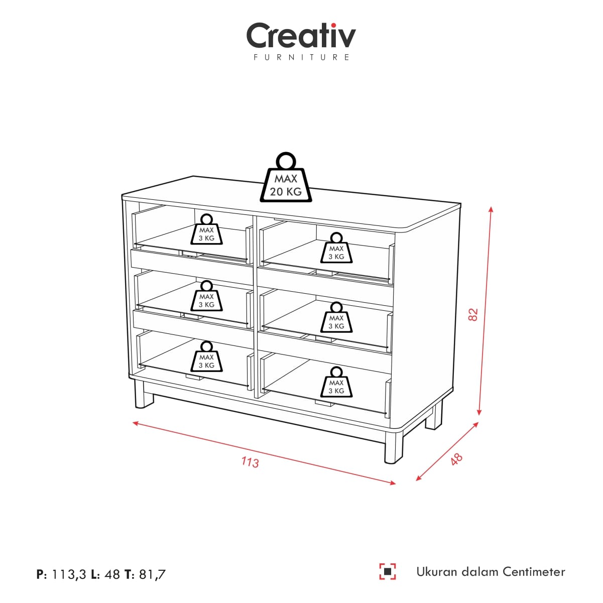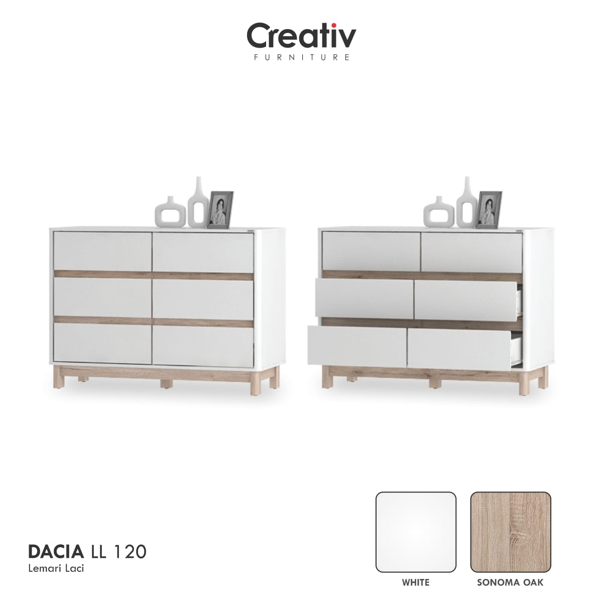 DACIA LL 120 merupakan lemari laci minimalis yang dilengkapi enam (6) laci dengan pintu handleless. Tampilan Sideboard Dacia isitimewa dengan rounded corner pada sisinya. Kamu dapat memanfaatkan laci untuk menyimpan barang-barang kesayanganmu. Dengan ukuran yang medium cocok dengan rumah minimalis masa kini. Dengan DACIA LL 120, kamu dapat menyimpan barang-barang kesayanganmu dengan nyaman dan aman.